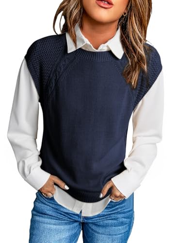 More information about Dokotoo Womens Sweaters Crewneck Cable Knit Vest Tops for Women 2025 Fall Fashion Clothing Cap Sleeve Sweater Vest