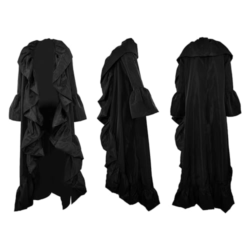 • Design: Featuring a distinctive open front design, floor length, asymmetrical hem, long sleeves, wide lapel collar, and ruffled detailing, these elements collectively lend the draped cape coat its trendy charm.