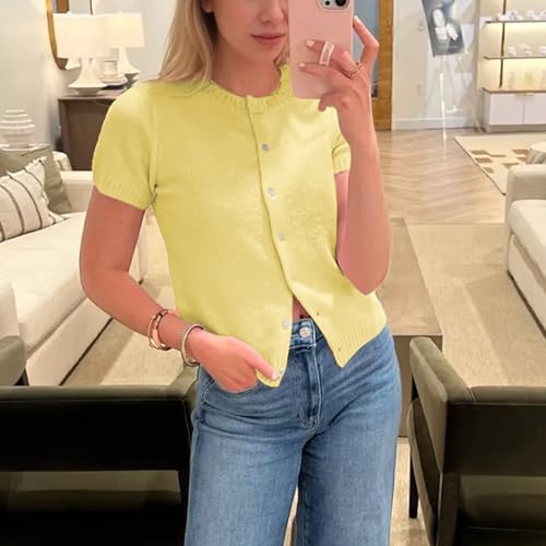 Womens Short Sleeve Cardigan Button Down Sweaters Knitted Casual Solid Color Outerwear Lightweight Cropped Tops 5