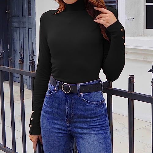 HOT ! Hyipels Women's Turtleneck Sweater Long Sleeve Fitted Lightweight Soft Knit Pullover with Metal Buttons