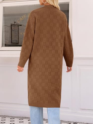 Saodimallsu Womens Long Casrdigan Sweaters 2025 Oversized Open Front Checkerked Sweater Trendy Knit Jacket with Pockets 5