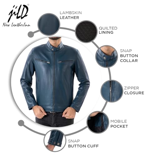 More information about Jild Classical Single Piece Lambskin Leather Jacket Men - Everyday Wear Snap Tab Collar Men’s Motorcycle Leather Jacket