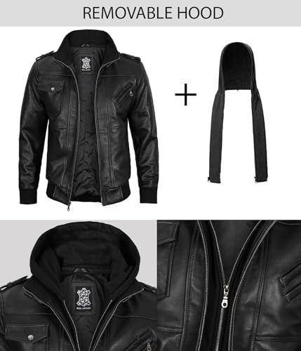 • STYLISH DESIGN: Hooded leather jacket for men features a detachable hood and bomber style, suitable for various occasions.