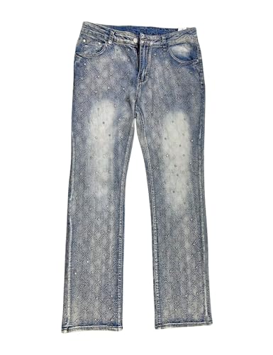 More information about Men Rhinestone Skinny Ripped Jeans Y2k Stretch Slim Fit Stacked Jeans Grunge Denim Pants