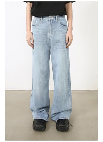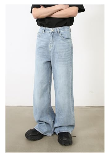 Men's Denim Jeans Korean Style Loose Straight Leg Casual Commuting Daily Home Office Pants for Men 4