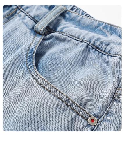 Men's Summer Jeans Thin Soft Denim Pants Loose Straight Elastic Waist Casual Trousers Classic Fashion 7