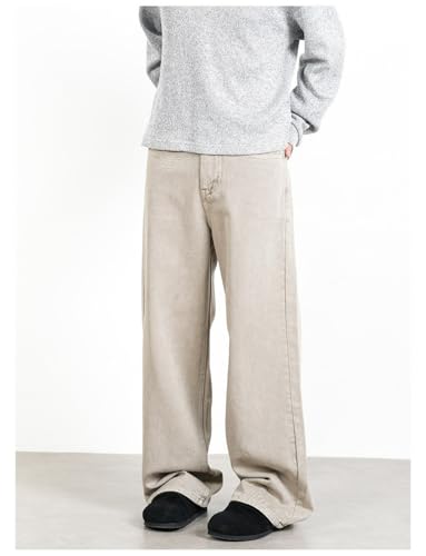HOT ! Jeans Pants Trousers Denim Retro Washed Apricot Loose Wide Leg Casual Commuter Straight Tube for Men