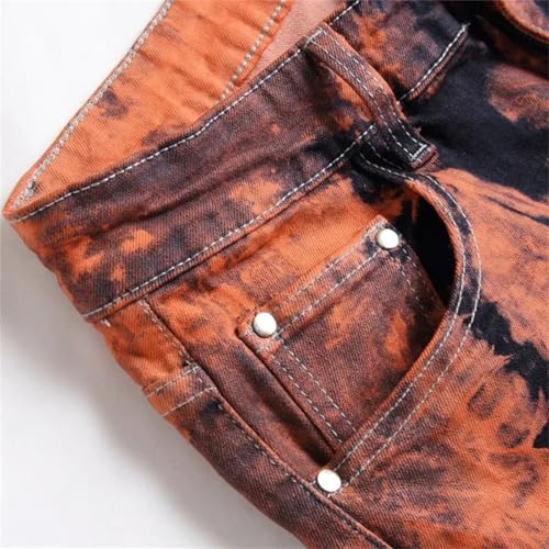Men's Personality Orange Jeans Fashion Vintage Stretch Slim Casual Denim Pants Streetwear Hip Hop Trousers 6