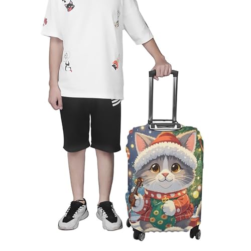 HOT ! Cute Cat Sing Christmas Carols Luggage Cover Elastic Luggage Covers for Suitcase Travel Luggage Covers Anti-Scratch Washable Suitcase Sleeve Fits 19-32 Inch Luggage