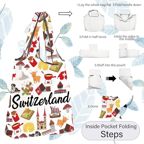 TOBGBE Switzerland Souvenir Gifts Swiss Themed Traveling Travel Vacation Bag Switzerland Traveller Foldable Reusable Grocery 5