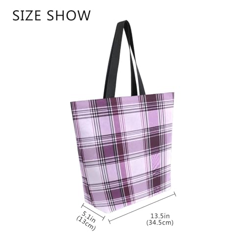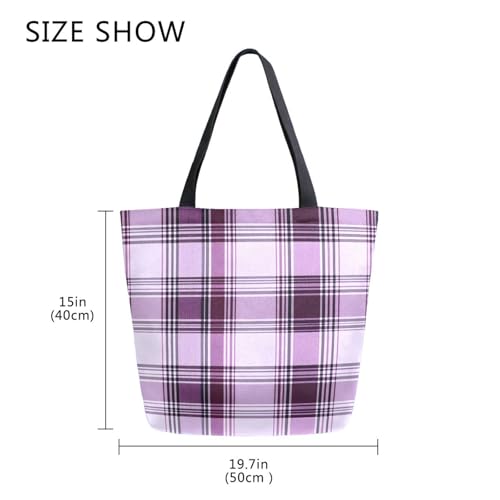 HOT ! Extra Large Shoulder Tote Bag for Beach Travel Weekender Gym Plaid Pattern Brown Purple Reusable Grocery Canvas Shopping Bag