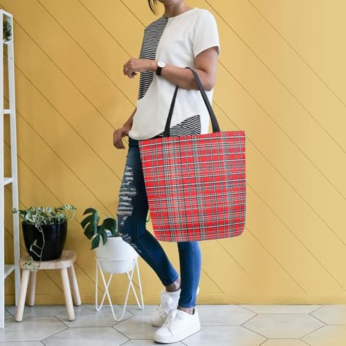 HOT ! Extra Large Shoulder Tote Bag for Beach Travel Weekender Gym Red Plaid Pattern Reusable Grocery Canvas Shopping Bag