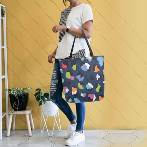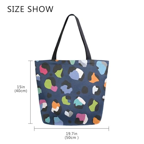 Extra Large Shoulder Tote Bag for Beach Travel Weekender Gym Blue Background Colorful Leopard Print Reusable Grocery Canvas Shopping Bag 7