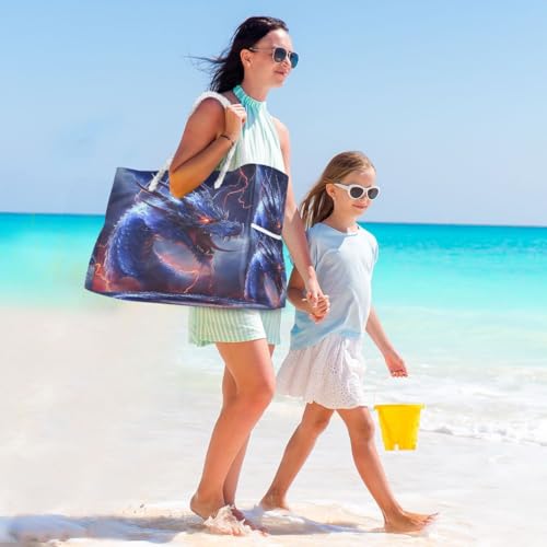 Large Beach Bags Totes Canvas Tote Shoulder Bag Blue Dragon Water Resistant Bags for Gym Travel Daily 5