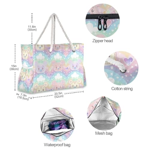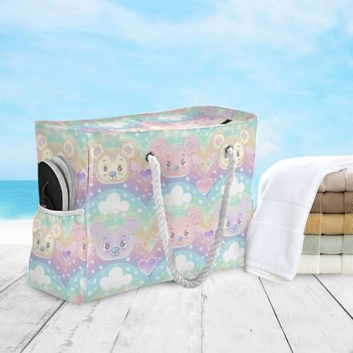 Bear Cartoon Large Capacity Large Beach Tote with side pocketes Bag, Shoulder Weekender for Travel Gym Vacation 5