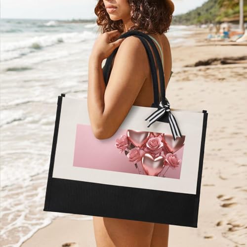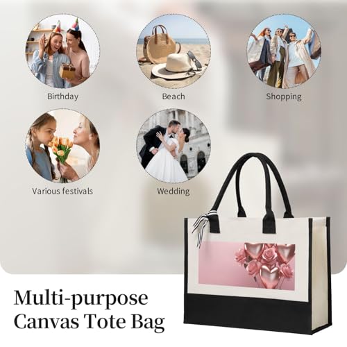 HOT ! Canvas Tote Bag for Women Beach Tote Purse Reusable Grocery Bag Pink Rose Balloon Heart Aesthetic Shopping Bags