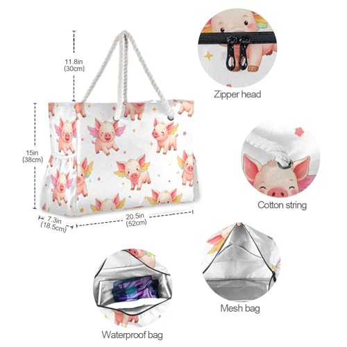 HOT ! susiyo Cute Piglets Beach Bags for Women Large Travel Tote Bag Waterproof Sandproof Lightweight Swim Pool Bag for Family Outdoor
