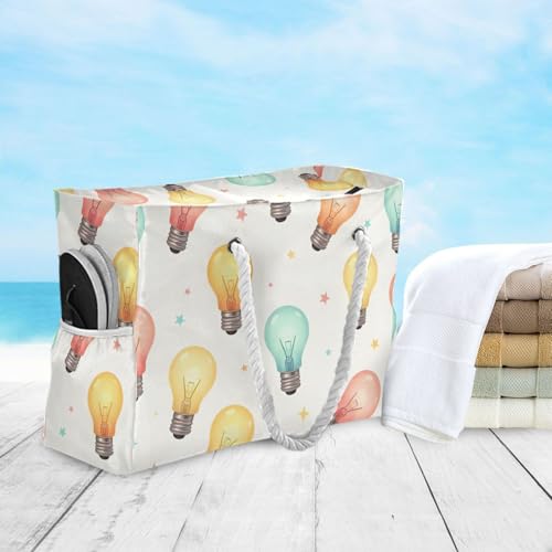 susiyo Colorful Light Bulbs Beach Bags for Women Large Travel Tote Bag Waterproof Sandproof Lightweight Swim Pool Bag for Family Outdoor 3