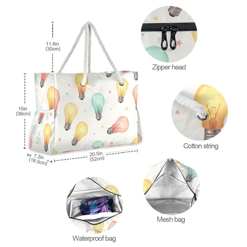 susiyo Colorful Light Bulbs Beach Bags for Women Large Travel Tote Bag Waterproof Sandproof Lightweight Swim Pool Bag for Family Outdoor 1