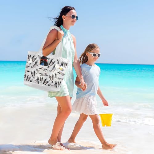 • DESIGN:This unisex beach tote bag features a large zippered pocket to help prevent your belongings from falling out; three slit pockets on the periphery, as well as a larger zippered pocket for smaller or your personal belongings to have a safe storage space, which is designed to make it easy for users to organize and store their belongings to enhance the user experience
