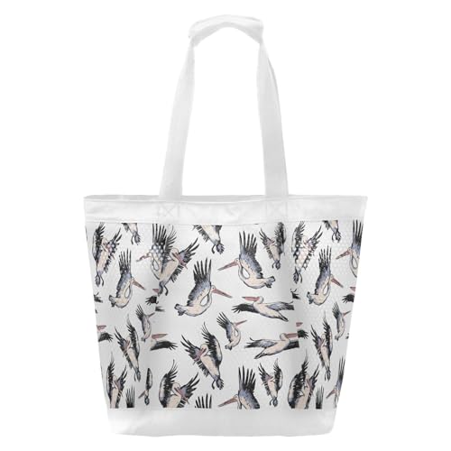 HOT ! Waterproof Beach Tote Pool Bags Beautiful Pelicans Unisex Gym Tote Carry On Bag With Compartment and Zipper Vacation Essentials