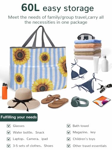 • ENJOY THE VACATION -- A day at the beach with friends is something to celebrate, and it has room for all your towels, swimming gear, beach toys, water shoes, water bottles, sunscreen, goggles, and even space It is easy to carry a large number of items and provides a good storage method for your holiday travel. The perfect beach bag for beach, boat, pool, travel, shopping, camping, sport, market, picnic and more