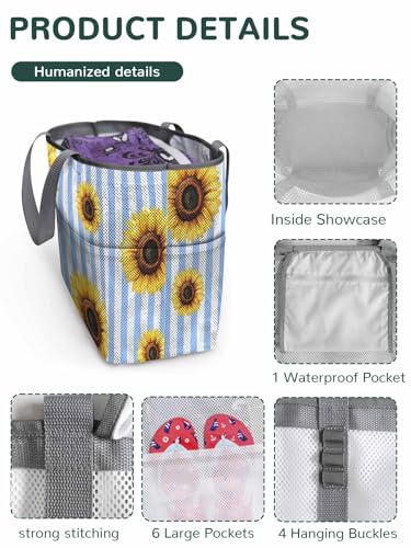 Beach Bags Women Mesh Tote Bag Rustic Pastoral Sunflower Toy Grocery Pool Bag with Pockets for Travel/Picnic/Shower 7