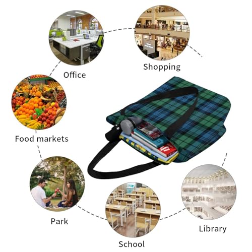 More information about Scottish Plaid Clan Campbell Green Blue Tartan Reusable Zippered Shoulder Bag, Stylish Polyester Tote With Wide Handle & Inner Pocket, Lightweight Durable Shopping & Travel Bag