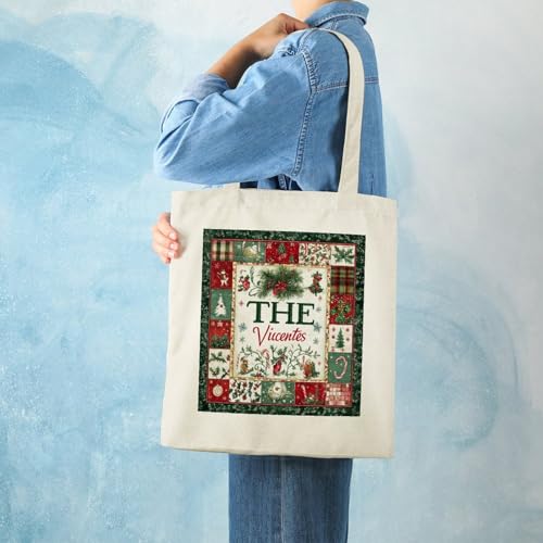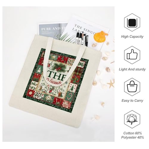Tote Bag Canvas Christmas Themed Monogram Name Personalized Reusable Shoulder Tote Bag Gift for Shopping Gym 5