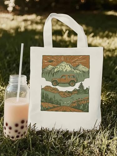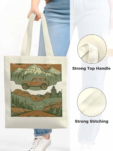 HOT ! Canvas Tote Bag, Retro Off-road Vehicle Mountain Aesthetic Canvas Tote Handbags for Women Shoulder Bag,