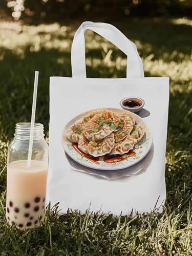 HOT ! Canvas Tote Bag, Dumplings Simple Style Watercolor Aesthetic Canvas Tote Handbags for Women Shoulder Bag