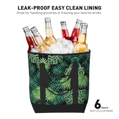 transparent palm leaf pattern Print Tote Bag Adult Heavy Duty For Picnic Beach Camping Large Capacity Insulated Tote Bag 7