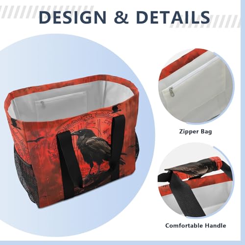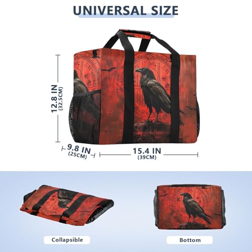 HOT ! Crow Red Gothic Large Tote Bags for Women Canvas Tote Purse Reusable Grocery Bags Top Handle Handbags for Travel, Work