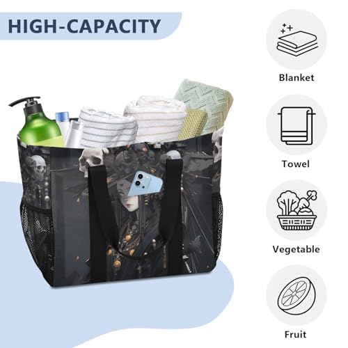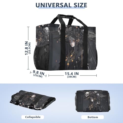 HOT ! Woman Gothic Hat Skulls Large Tote Bags for Women Canvas Tote Purse Reusable Grocery Bags Top Handle Handbags for Travel, Work