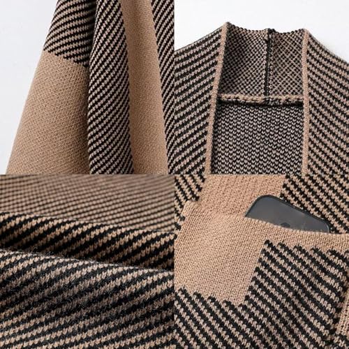 HOT ! Women 2025 Fall Knit Cardigan Sweaters,Open Front Long Sleeve Striped Colorblock Coats with Pockets