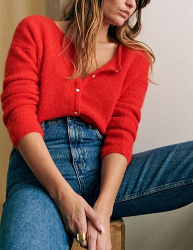 More information about Lviefent Women Knit Cardigans Lightweight Casual Crew Neck Button Down Long Sleeve Sweater Jumper Layer Top (Red-M)