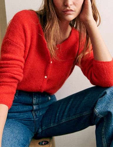 Lviefent Women Knit Cardigans Lightweight Casual Crew Neck Button Down Long Sleeve Sweater Jumper Layer Top (Red-M) 7