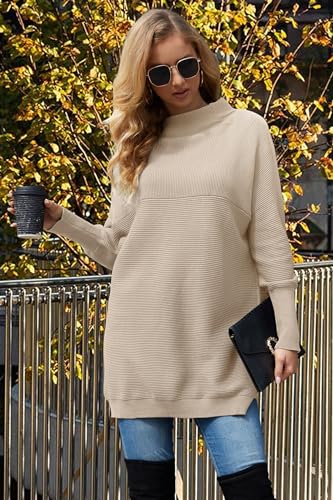 Women's Oversized Turtleneck Sweaters Tunic Batwing Dress Long Casual Wear No-Pilling Knit Pullover Tops 2