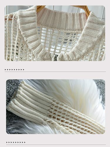 • Features: This crochet sweater features at hollow out, quarter zip, open weave, ribbed cuffs and hem, long sleeve, eyelet knit, mesh like, relaxed fit, loose, solid color, casual and sexy knit tops