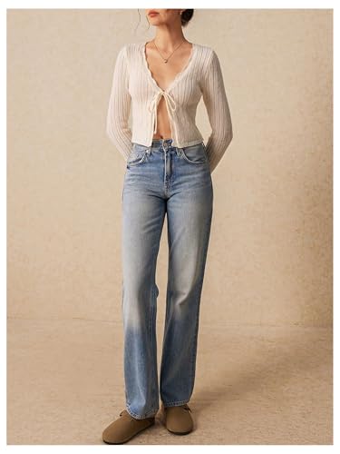 HOT ! Floerns Women's Long Sleeve Lightweight Cardigan V Neck Tie Front Knitted Sweater