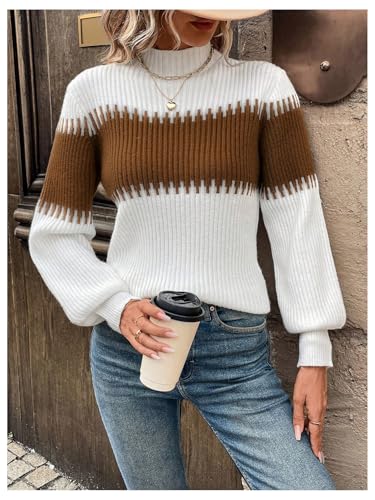 SOLY HUX Fall Sweaters for Women Color Block Mock Neck Bishop Long Sleeve Pullover Sweater Tops 5