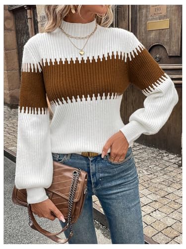 SOLY HUX Fall Sweaters for Women Color Block Mock Neck Bishop Long Sleeve Pullover Sweater Tops 4