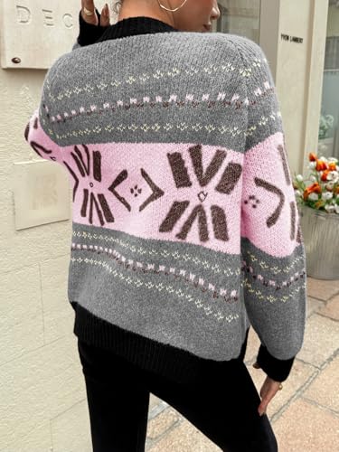 • Features: Snowflake pattern, striped geometric print, heart-shaped button, long sleeve, raglan sleeve, crewneck, loose fit, trendy retro style. Fair Isle knit pattern with heart-shaped buttons and contrasting trim for a charming, feminine look. The button down sweaters for women will never out of style