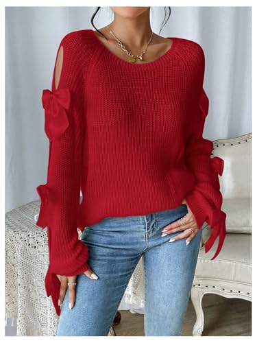 More information about WDIRARA Women's Bow Cut Out Long Sleeve Sweater Oversized Knit Pullovers Crew Neck Top