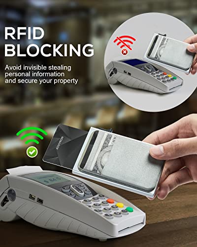 • RFID Blocking Technology for Security: The Metal card holder wallet has the RFID blocker built in for extra security. The aluminum case can protects your card information from unwanted wireless device scanning, ensuring the safety of your private property