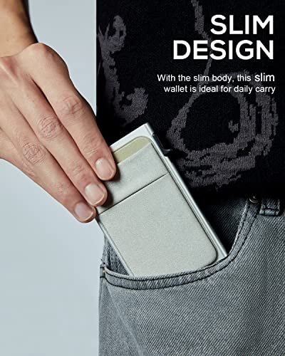 Slim Pop Up Wallet Card Holder with Money Pocket,Minimalist Wallet for Men RFID Blocking Smart Wallet Metal Card Case 6