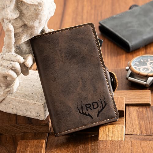 Personalized Leather Aluminum Metal Card Holder Wallet for Men, Custom Money Clip, Christmas Father’s Day Gift for Dad Husband 1