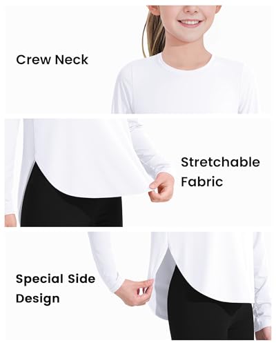 JOCMIC Girls Long Sleeve Shirts, Quick Dry Kids Athletic Tops, UPF 50+ Sun Shirt for Hiking Yoga Tennis 3
