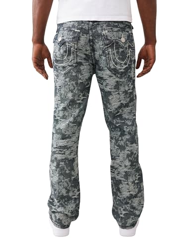 HOT ! True Religion Men's Jacquard Bobby Super T Flap Jeans 32" Inseam – Relaxed Bootcut Denim with Patterned Finish