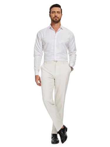 • [Tailored Regular Fit]: Mens summer dress slacks are designed for a regular fit that provides enough room through the seat and thighs. A straight-leg cut delivers a polished silhouette that flatters all body types, ensuring a professional, clean look; The linen pants strike the perfect balance between style and functionality
